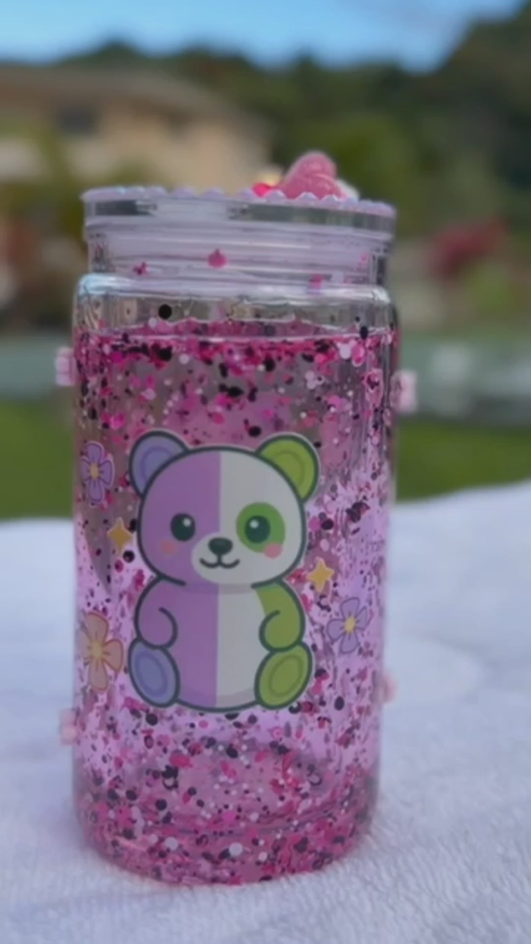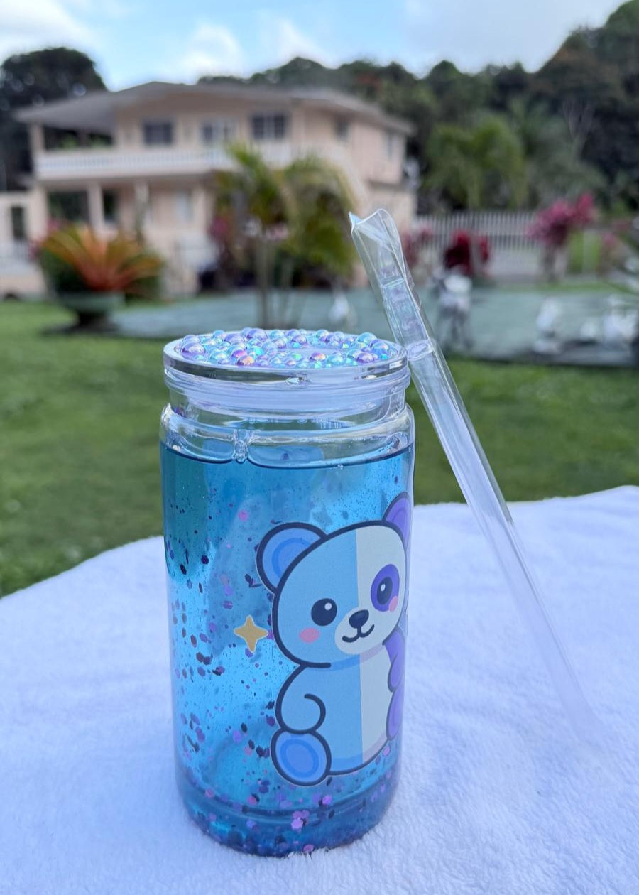 Transparent 16oz PC Plastic Snow Globe Tumbler with Straw & Lid.